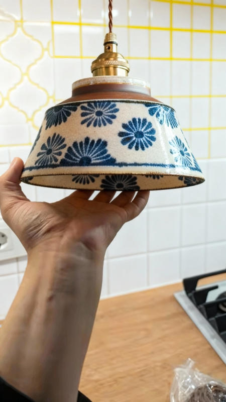 This lamp is such a conversation starter! The blue floral pattern reminds me of vintage pottery, and the craftsmanship is outstanding. Hanging it over my kitchen island instantly made the space feel more curated and warm.